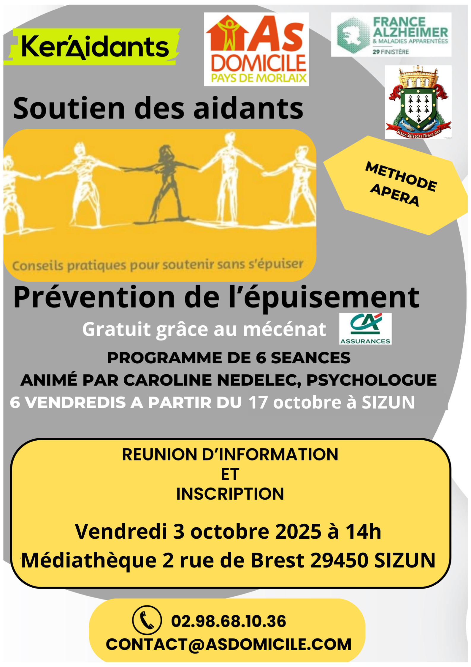 réunion pour présenter le cycles de conférences de la méthode APERA : Approche de Prévention de l’Epuisement en Relation d’Aide, animée par Caroline Nedelec, psychologue. Cette approche basée sur l’apprentissage de la gestion de l’énergie permet à tout à chacun de s’engager dans une démarche de changement pour la protection de sa santé.